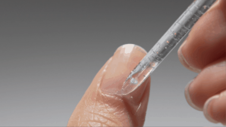 APPLY A PEA SIZE AMOUNT OF GLUE ONTO YOUR NATURAL NAIL.